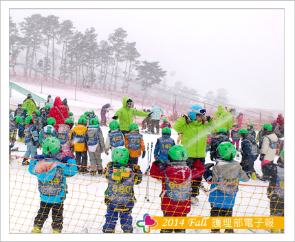 韓國的小孩也真是不怕冷,在我們因寒冷打多嗦時,小朋友正專心聆聽教練所教學的步驟,真是可愛的集合。