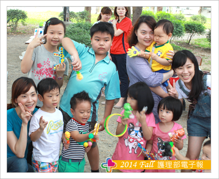 大家也利用這次的戶外活動,彼此分享自己帶小孩的經驗。小朋友們也來個小小聯誼,一起玩套圈圏拿獎品、玩遊戲,增進親子關係,不論大人及小孩都玩的不亦樂乎,小朋友們拿著戰利品開心拍照。