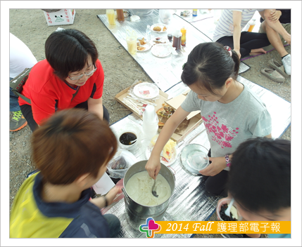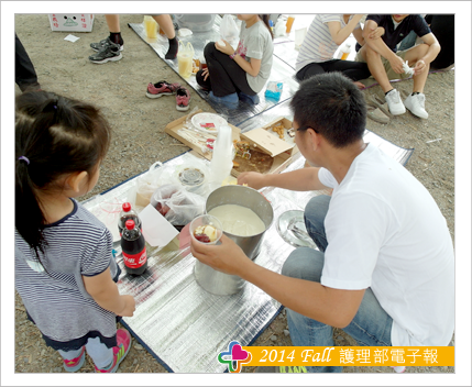 甜點為自己動手DIY手工豆花,讓大人和小孩可以體驗自己盛豆花、加料的樂趣,口味、甜度可隨自己喜愛做調整喔!不只受小朋友熱烈歡迎,大人們也個個吃的讚不絕口。在太陽公公賞臉下,當天天氣風和日麗,在樹蔭下乘涼野餐,邊聊天邊吃buffet,吃飽了大家席地而坐,女人們七嘴八舌聊聊工作上、生活上的趣事,讓自己的心情Reflex一下,真是人生一大樂事。