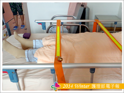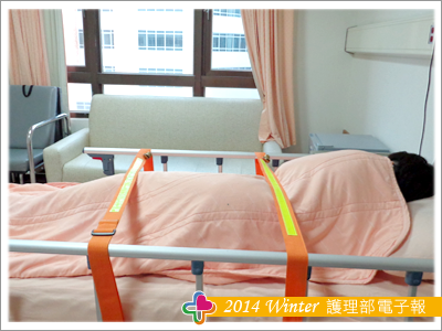 發出聲響,提醒照顧者病人要下床囉!當然,此防護帶必須能符合病人翻身需求,倘若