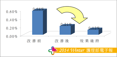 1. 降低跌倒發生率:統計2013年跌倒發生率由0.14%降為0.09%,效果維持至2014年