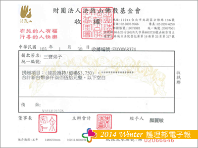 平常工作忙碌,可能很多時候想獻身公益卻心有餘而力不足,但我卻從公益活動中看到了很多很多不同的愛,有人捐健康養生食品,我看到鼓勵養生的用心;有人捐衣服,我看到女人們一件一件當初是自己最喜愛的衣服,可能因為身材走鐘(台語)、不合身但卻捨不得喜愛把它硬收藏在衣櫃裡裝飾,為了公益忍痛割愛;有人捐書籍,我看到一套一套是父母對孩子的用心;有人捐玩偶,我看到陪伴孩子長大的童年時光,孩子長大了再將這份愛分享給別人。偶然的契機舉辦了這個活動,看到很多人有力出力,從捐贈東西開始就發現很多的用心,單位的大家也為了公益活動費盡勞力的東奔西跑,我想無論是活動前、活動中、活動後,每一個參與的好心人,我心中都有滿滿的感謝和滿足,而我們的這份愛也分享給了其他每一個弱勢族群,2014(愛你一世)暖冬送愛心義賣大成功!