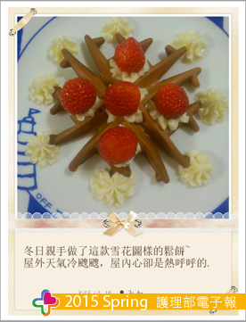 說到熱愛烘焙,有一段小故事,回顧在奇美長達二十年的護理工作生涯,相信很多人跟我一樣,從單身步入婚姻,邁入家庭,生活重心除了工作就是家人。護理的工作一路走來,難免有瓶頸、有崎嶇,曾經幾乎快要喘不過氣、幾乎快要爬不起來,幾乎就要投降放棄之時,總有我們可敬的長官、親愛的同事姊妹們都曾伸出有力的雙手拉我們一把,幫助我們在護理之路繼續學習也不斷的成長;除此之外,還有一股存在的力量,您可能暫時遺忘的、是他人無法給予的,就是「興趣的培養」。