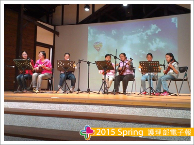 我們演出曲目是老少咸宜的快樂天堂以及耳熟能詳的天空之城二部合奏。兩首曲目說難不難,說簡單還真的得花些時間練唱,練彈,還要練默契。團員們除了自己在家練習之外,更要善用下班後的零碎的時間,三三兩兩組合團練。因為在醫院輪班工作的我們,時間要湊成一起實在太不容易,我們可是等到上臺那一天,大家才全部到齊一同抱佛腳呢! 演出的那一刻,滿滿的觀眾,我們在地的親友團,外地來的觀光客,還有文化局的督導人員,還錄影存證!讓臺上的我們可是手心發冷,喉嚨都緊縮起來呢!等到演奏完畢,到了後台夥伴們不禁相視而笑,笑誰剛剛放炮,誰搶拍了,怎麼正式演出跟前面幾百次的練習不太一樣呀!回到工作崗位後,相信大家在工作之餘想起這次批批挫的經驗,應該跟我一樣,覺得很美妙吧!