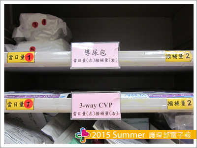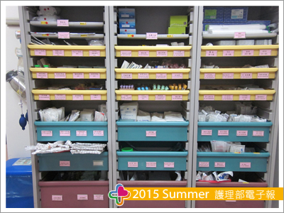 圖一 衛材櫃(改善後,分格分層擺放,並以星期標籤1為優先使用)