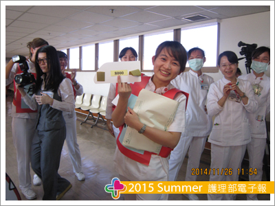 活動最後,社服部很貼心,設計抽獎活動,很幸運的我們抽出本列車最大獎現金8000元,這是在活動中意外的收穫,同仁驚呼尖叫,開心的忘我,後來才聽說,因為我們的快樂尖叫聲已傳到9B病房,眾人皆知。