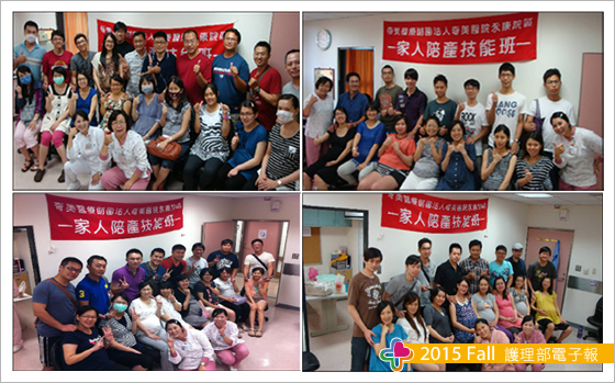1.103.06.07-103.10.04共舉辦8 場家人陪產班,參與人數共124人(含陪產者),課程滿意度皆達100%,共62名產婦參加,陪產者皆為先生共62名,執行過程請見附件二。