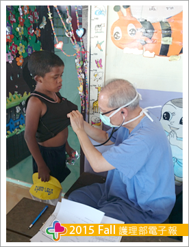 記得在第二天下午的一間幼稚園前庭,我們一行人在當地村民的協助之下,簡單的收拾環境,並快速的規劃出動線開始進行巡迴醫療服務,在服務快接近尾聲時,一個男孩走了進來,如果沒有認真將視線停留在男孩臉上,你不會發現有異狀,他只有一抹傻傻的笑容,看起來很可愛,再次專注看男孩的笑容後,這才發現,男孩天生鬥雞眼,反應也與其他小孩不同,男孩在陳德人醫師的診視過程中,臉上也總還是帶著一抹靦腆的微笑,男孩應該有先天的智能障礙,心臟也有雜音,其實我們當下,也不能為他多做什麼。看著這孩子,讓我偷偷的轉過頭去擦了一下眼角的眼淚,「上帝為了這孩子關了一扇窗,但為他開了另一扇門」我心裡是這樣想的,這樣的孩子好險是生在這樣的環境之中,他可以無憂無慮的成長,但如果他出生在我們的生長環境,勢必一定會很辛苦,生命原來就是如此,我不需要太執著,我應該要更樂觀的去面對每一件發生的事情,因為塞翁失馬焉知非福,努力的活在當下最重要,這男孩讓我看到生命的活力。