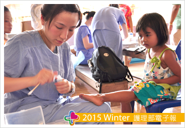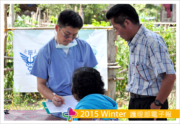帶著長官的祝福,泰國邊界暨泰國桂河基督教醫院醫療服務團驅車前往小港機場,馳騁在高速公路上,路邊伴隨著白色木棉花飛舞,彷彿描述著此刻心情,期待著與泰國朋友們相遇。這次的服務團,團員包含家醫科、牙科、小兒科、婦產科、外科、麻醉部、藥劑部、加護醫學部、護理部及國際事務部,成員共16名。2015/05/04-05/08是瘋狂的醫療服務日,忍受炎熱的高溫及許多的看診民眾,共服務731位大、小孩,其中牙科就佔了237位!看診民眾中大人多以腸胃疾病、酸痛為主,醫師們除了協助開藥外,另類療法-拔罐也是大受歡迎的。醫療服務過程,不乏看到許多貧困的民眾,甚至有些嚴重到需轉診的病人,但因為經濟、交通等因素,只能黯然返家;兒童多為頭蝨及牙齒保健,環境的不良與小孩間的交互傳染,頭蝨個別衛教已無法讓陪同的翻譯人員同時兼顧看診民眾的翻譯,機伶的醫療服務團隊立即改變衛教方式,以團體衛教方式進行,再配合禮物(貼紙、氣球、糖果)的放送,果真讓衛教結果達良好的成效,印象中有一小女孩立即回家洗頭,還讓我們檢查呢!令人驚訝的是,兒童齲齒倒是不多,多為塗氟!