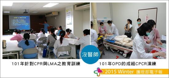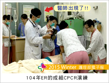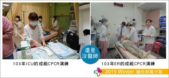 因轉換沒多久,就面臨了下半年度的成組CPCR稽核時程,當時的委員會尚不穩定,馬主任與督導們決議做最小的改變,承襲佳里醫院作法,一樣各單位自行演練,委員會委員(由護理長組成)至各單位進行輔導與抽測,但與原來不同的是考官多了一位,少了藥物的測驗,這改變各單位也頗能適應。