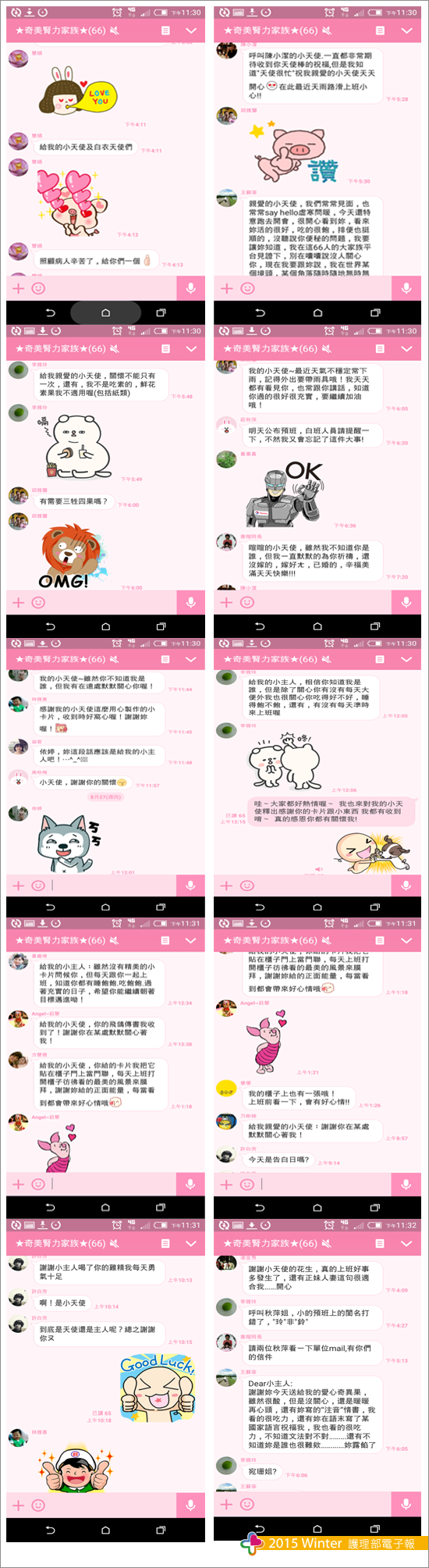 接下來的三個月,不時予以加熱活動的氣氛。「我只在乎你」轉交小天使所付出的關心、享受小天使送小主人的愛心禮物,無時無刻沉浸在愛無限的氛圍裡,每人每日皆有期待,讓護理工作不再枯燥乏味;「你儂我儂」小主人在單位line群組公開為自己的小主人熱情表白以回饋的心意,彼此的付出與分享,讓血液透析室的「幸福超載」到破表。