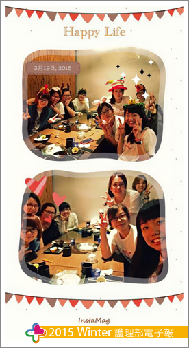 我們是來自四面八方的個體,每個人個性大不同,亦因忙碌工作消磨了不少護理熱情,此次活動讓我們感情融洽與凝聚,除感受出門在外的溫暖與幸福,也重拾護理的熱忱!好像訴說著:「You are not alone, We'll always by your side!」。感謝愛我的同事和我愛的同事們!我很幸福!