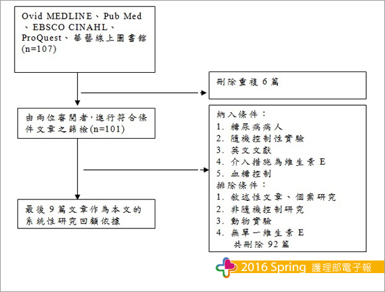5.排除條件:敘述性文章、個案研究、非隨機控制研究、動物實驗、無單一維生素E。