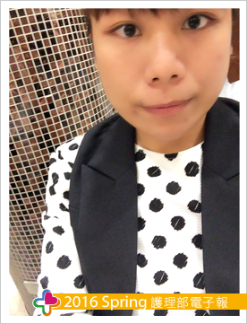 身為護理人員的我,常常看到生離死別,看到家屬擔心病人的病情感到焦躁,這些我都能體會,工作時也告訴自己,要視病如親,相信對病人的用心,是能被感受到的,或許有時候工作忙碌時少了點笑容,但相信每一位護理人員都是認真工作的,每位護理師也希望病人狀況穩定,有時候我們所做的不被認同,但是覺得做好自己的本分,問心無愧就好;護理工作不容易,相當辛苦,但為什麼還是有護理師願意繼續在臨床工作呢?我相信每位護理師的心裡一定有屬於自己的答案,我最愛的阿嬤,也曾經問過我:「工作辛不辛苦?」,我總是笑著對阿嬤說:「不辛苦,我要努力賺錢。」,身為護理人員的我,希望大家能給護理人員多一點鼓勵與支持,因為工作背後有許多不為人知的辛酸,是很多人無法體會的,病人與家屬曾經說過,我看起來每天都很開心好有活力,我也回應他們:「保持開朗的心情,工作才會有動力」。我會繼續在神聖的護理界工作,祝福每位臨床的護理人員能開心工作,一起加油!