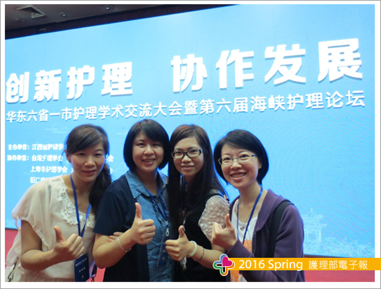 2015年9月在莉蓉護理長的鼓勵下決定參與在中國大陸江西省舉辦的「海峽護理論壇暨論文發表會」,經過護理長的指導與修改,不負期盼獲取到大會錄用,心情由焦慮到期待中出發至南昌。
