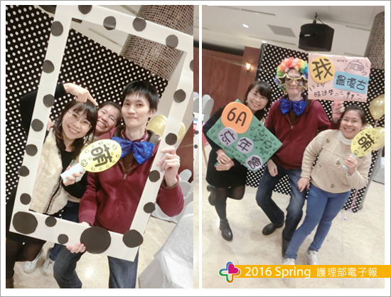 「拍照背板」想法是我的堅持,因為不想大家只是來吃一場簡單的宴會,吃完就默默離開,「拍照背板」可以讓大家在藉由拍照時有了接觸,透過互動而零距離,把忘年會營造成Party的氣氛,讓單位同事放鬆玩樂的;籌備期間開了無數個大大小小會議,犧牲睡眠、假期拍影片、製作影片、練舞、採購材料製作背板、租道具等,回家仍還在「Line」討論著忘年會活動的繁瑣事項,希冀這個屬於我們6A的忘年會更好,讓來賓們一進場就能感受到我們的用心,一起進入屬於我們的復古時代吧!