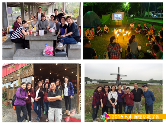 第一天早上活動工作人員們很快地就到了烏山頭水庫,為了隔夜的早餐,必須提早去看附近的店家,至少缺乏物資的時候有地方可以補貨,當入園的時候就期待著活動內容有烤肉,玩遊戲…等。活動過程中,有喜有悲有歡笑,從紮營看到同仁們在炎炎日頭下盡力揮灑汗水、同心協力的團隊精神,更是令人感動,想必大家已經期待許久了,開始準備烤肉的同時,每個人開始分工合作,有些人去清洗食材,有些人去起火烤爐,有些人當起了DJ 娛樂每個人,甚至親子家庭的同仁看著小孩四處奔跑,尖叫聲真的是令人感到溫韾的畫面,烤肉中有些人在別桌玩起桌遊遊戲,當笑聲環繞整個鐵皮屋下,真的會讓人覺得很放鬆。直到夜晚有個影片欣賞活動,一起圍圈圈環繞著營區的感覺,圈圈內點起了營火,開始影片欣賞的同時,已經感動每個人了,影片中有每個人的畫面,當在音樂的催促下讓每個人想起工作辛苦的樣子,勞累的代價都覺得值得了,雖然有同事必須離開,但我們永遠祝福每個人,就俗語說:(天下沒有不散的宴席)。一個工作職場上,能夠一起奮鬥是不容易的,緣分很重要,因此當個人在分享心情的同時,早就一堆人哭得唏哩嘩啦了!一起撘肩勉勵彼此再多的辛苦,都不要忘記自己是最優秀的護理同仁。