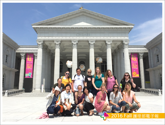 審閱「BYU學生實習計畫」,瞭解實習計畫內容含括:護理專業指導、台灣護理文化、簡單的護病溝通,與非醫療環境的文化觀光等,這些行程作業均需學生實習委員會協助安排,因此透過1個月的親力親為方知常規實習計畫裡,有諸多鎖碎細節須協調與處置,若僅是跨科部的業務溝通,尚能應對。然猶記第一天的高鐵接送、宿舍環境介紹、奇美博物館參觀與餐敘,語言隔閡真是一大挑戰,所幸BYU師生們活潑、熱情,嘗試利用手勢、表情、簡單英文、國語打破語言阻礙,讓我不自主放下恐懼與他們互動。此外感謝部內大家長绣琴總監、超主席惠英副主任、主席小壎督導的指導,及其他相關部門主管、同仁的協助,如:國際事務室麗貞主任精心安排非醫療環境的〝奇美博物館〞參觀與餐敘;中醫部許堯欽主任、王瑜婷醫師認真規劃中國傳統醫學參訪;總務室管理組雅惠辦事員細心安排師生宿舍;明宏司機大哥辛勞的接送師生往返目的地,及倩宜團膳負責人費心料理歡送會餐點等,讓第一次接獲任務的我,可諮詢與討論,不那麼徬徨,完成艱難任務!