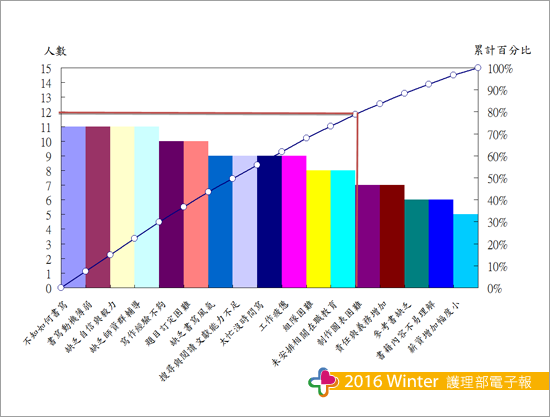| 圖一 專案報告書寫困難原因之柏拉圖 |