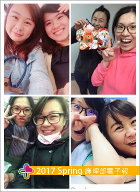 初踏入臨床工作時,壓力真的好大,面對病人、家屬、其他醫療團隊,都在適應、調整、充實自己。工作和學校生活截然不同,不一定會有好朋友陪在身邊一起努力!幸好老天爺對我真好,給了我一個好搭檔,同單位、同年紀、個性又合,一起上班、一起分享筆記、生活、工作瑣事,我想我們的合拍,主要是因為我們一起因為壓力而變胖又一樣愛享用美食吧!
