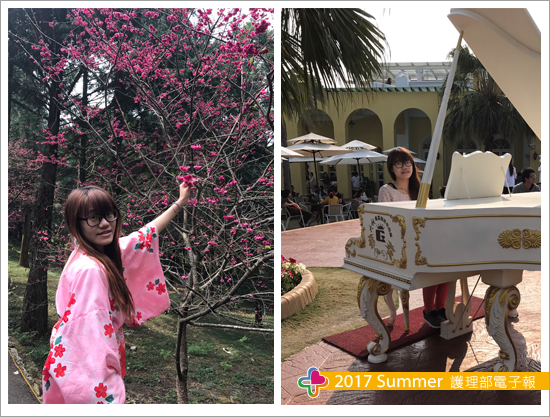 這次搭配著園區櫻花祭的活動,體驗穿著日本浴衣在櫻花大道下拍攝美麗的照片,就如同來到日本一樣,在大自然的美景洗滌之下,所有的壓力及疲勞都消失了,令人心曠神怡。隨後我來到了一間頗具特色咖啡館,裡面有座仿佛童話般的城堡,庭院中更有唯妙唯肖的南瓜馬車及鋼琴,在這裡除了可以享受悠閒的下午茶時光,更能沐浴在夕陽的美景下,讓人彷彿沉浸的在童話故事裡。原來,生活可以如此的愜意!