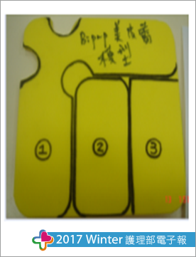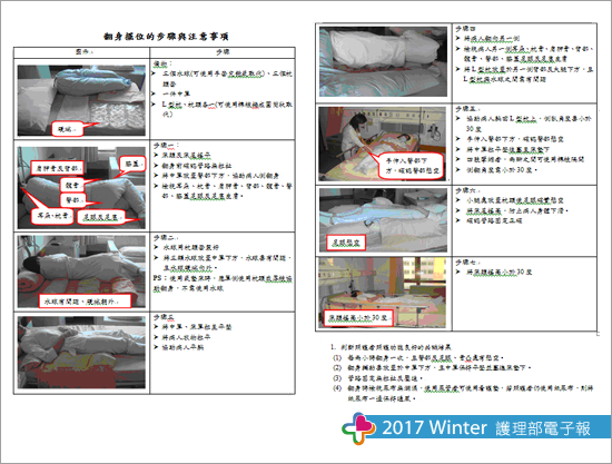 二、製作「翻身擺位衛教圖卡」(圖一):包含從備物、步驟與回覆示教重點,以達一致性,並將檔案存檔於每台行動護理車,以利隨時參閱。