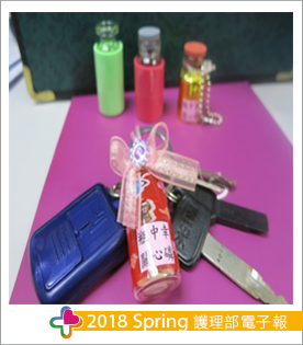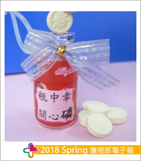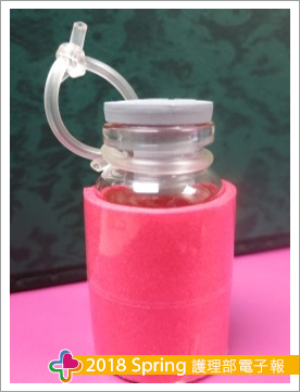 專業適用於長期透析需服用磷結合劑者,因應病人因繁忙而忘記服藥及用餐時因服藥而曝露透析身分等問題,進而研發置放磷結合劑之隨身瓶鑰匙圈,於用餐時僅需將鑰匙圈內的磷結合劑,裨益病人服藥方便性及隱密性。