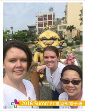 進入護理臨床工作,偶遇外國籍病人或外籍看護工,才以簡單的英文單字或片語簡單羞澀地回應。2011年是我轉任到居家護理所服務的開始,有別於醫院服務形態,需主動駕駛公務車到個案家中提供護理服務。隨著時代變遷與進步,各醫療院所也開始引領台灣護理人員與國際接軌,每年5月安排美國楊百翰大學(Brigham Young University, BYU)的護理學生到人情味十足府城古都-台南永康奇美醫院見習,以跨文化護理海外學習為目標,實地走訪為了解台灣當地的護理精神、專業角色發揮、臨床作業與醫療團隊之運作及宗教文化的差異性,居家護理所是其中一個見習單位,可理解的是外國人想認識台灣人對於維持健康的生活型態及面對疾病的處理態度,但我想必須要能夠“溝通”,才讓他們不虛此行。對於說英語還算有興趣的我,沒有實戰經驗卻在2013年主動報名,經金盆督導的支持下,爭取與BYU學生互動教學的機會,經由單位學姊的經驗分享,先查詢關於飲食、地名的英文單字,製成表格隨身攜帶,心想醫療術語、工作流程我還能應付,到個案家中,外國學生感興趣的卻是傳統建築古厝、神桌牌位、點香設備,這完全不在我的教學清單中,加上我的英文聽力經驗不足,還好有隨身伴行的家醫科醫師與手機翻譯,但事後充滿淡淡哀傷~就是自嘆不如、挫折重重。