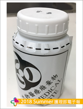 心想,怎麼沒聽過,去服務台領回後,答案揭曉:哈哈原來是『針頭收集盒』(圖一)。