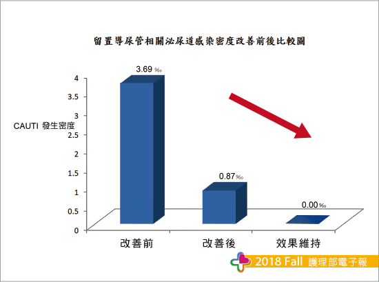 80%泌尿道感染與放置存留導尿管有關,導尿管多放置一天,感染風險增加3-10%;一旦發生留置導尿管相關泌尿道感染,不僅會延長住院天數、增加醫療成本,嚴重則使病人面臨死亡威脅(李、劉,2013;劉、林、郭、李、鄭,2014)。統計105年1-6月留置導尿管相關泌尿道感染密度為1.06‰(2/2118),106年1-6月留置導尿管相關泌尿道感染密度攀升至3.69‰(7/1979),引發主管重視,責成改善小組,期望運用組合式照護措施,降低留置導尿管相關泌尿道感染密度由3.69‰降至1.8 ‰。