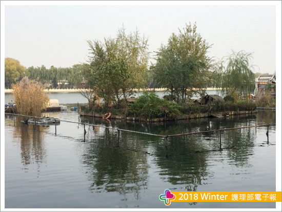 走著走著今日重頭戲--什剎海即將登場,一夥人在銀錠橋拍照留影,原計畫搭船遊什剎海,放眼看去沒看到碼頭,一夥人站在銀錠橋地圖前面猶豫該往左邊還是右邊走,黑導我心想應該往右邊走,二人說往左邊走,一人沒意見,於是少數服從多數,走著走著四人腳力出現落差,彼此之間有著一段距離,空氣頓時凝集、瀰漫著一股沈重的氣氛,此時發現走錯方向,四人拖著沈重的腳步繼續向前邁進,因為已經繞什剎海--後海半圈了;黑導我必須負起導遊重責大任,娛樂大家,沿途引領隊友欣賞美麗海景與海上鴨子別館,並為大家留下美麗的倩影,美中不足的是天空陰陰的,不然照片就美呆了,哈哈!碼頭、碼頭、碼頭終於出現在眼前,但…晴天霹力碼頭下午3點才營業,黑導我只能安慰隊友人家是搭船遊什剎海,我們不一樣是用雙腳走路遊什剎海。