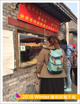 迷路途中看到很多胡同,其中有一片看似沒有盡頭的牆,就是恭王府的外牆,黑導我認真地簡介恭王府的特色。自由行有時會有美麗的意外,在恭王府附近發現在地美食--麻花及各式麵餅,店面小小的、相當不起眼,沒注意看還真不知道它是一家店,引起我們的注意的是它的人潮絡繹不絕,好奇的我們當然走近一看發現它賣各式麵餅,喜愛美食的我們怎麼能錯過,天啊!麻花超級好吃,唇齒留香,隊友們意猶未盡,還走回頭買第二輪!