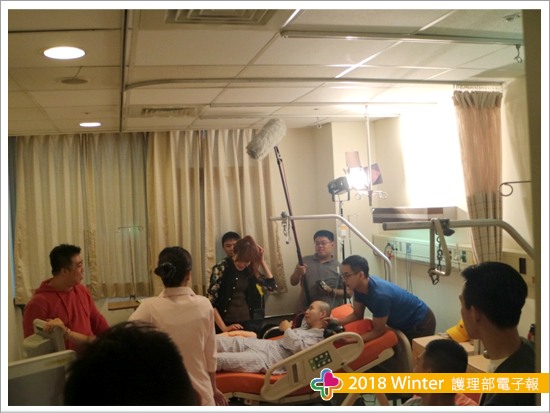 經過製片的講解,我們了解短片主要呈現的內容,為以第一人稱方式呈現於人的一生之中,護理師所扮演的角色主要陪伴走過人生種種歷程。由於影片拍攝過程,我們並不是專業的演員,無法表達導演的信念,所以NG及出糗的片段頻頻出現,但導演、製片及片場人員大家都十分有耐心,也非常尊重護理師的專業,拍攝過程也不忘聆聽大家的意見,漸漸的在團隊合作及默契培養下,我們漸漸找到方向,然而這短短2分鐘的宣傳短片,拍攝時數卻長達10小時,說真的大家都非常辛苦,但我也從這次的活動獲取許多截然不同的體驗,並且認識了來自全台各地的護理師們,是一個非常棒的經驗。