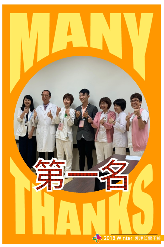 看到學弟妹的認真,真的很感動!謝謝他們願意接受我們的意見,讓我們參與演出!更重要是我們準備了隊呼,加上單位同事們到場加油,因為他們的加持,一整個氣勢磅礡(有誇張~),我想這就是團隊、一家人的感覺啊!真的很謝謝他們!愛8B!因為大家認真的態度,這麼團結的單位,這次的比賽,我們得到【第一名】,整個開心加撒花~。旻萱跟翔宇說:在工作之餘還能有這難得的經驗,真的相當可貴!感謝護理部研發委員會舉辦這次的活動,也謝謝三位評審的建議與肯定,這份榮耀是屬於8B病房全體人員的!