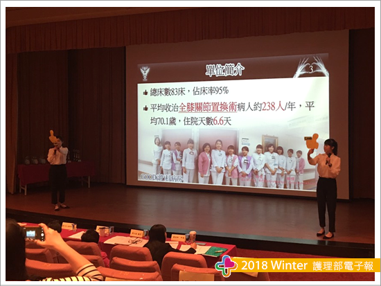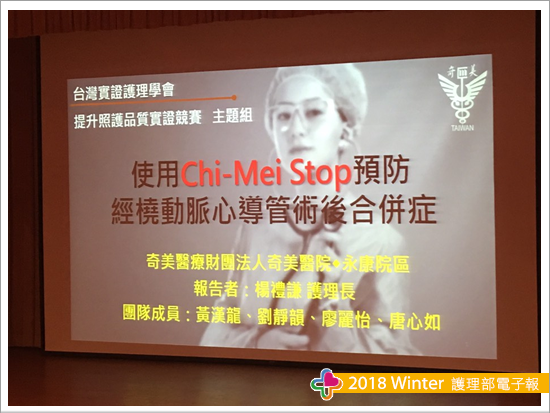 聽完研討會第一天實證護理應用組(一般組)的精采報告後,接下來就來到第二天實證護理應用組(主題組)的報告,「膝力人生~運用早期復健計畫提升全膝關節置換術後病人主動屈膝角度成效」主要由我們5A團隊的周珊珊、陳歆妮互搭進行報告,彼此間無論聲調與語氣皆非常和諧,彼此默契合作無間,有如雙胞胎姊妹搭檔雙簧,讓整場聽眾宛如身處在一場非常舒服的實證學海;而實證形成到應用的嚴謹步驟與簡報內容,背後有著堅強的團隊,由實證種子鄭君婷小組長與李怡珍護理長循序漸進帶領,準備過程均在郭嘉琪高師輔導下,除了原本該有的實證五大步驟包含5個S及7個A,5S即是由研究文獻(studies)、統整(syntheses)、精要(synopses)、結論(summaries)、系統(systems)所組成,這些文獻經過整理之後,萃取出重要的知識於臨床工作系統中,“7A”是一個在臨床照護中,實踐知識時產生的滲漏過程,要對抗這7層的滲漏,經由PDSA cycle(戴明循環, Plan-Do-Study-Act),強調持續改善之精神與改善之基本原則,讓滲漏減少以提高醫療照護品質,此外這組更加入了GRADE的評析,使得內容更臻完美;另,「創新止血加壓器改善心導管術後橈動脈出血率」則由我們9A楊禮謙護理長領銜報告,主要是向大家分享奇美醫院的創新止血加壓器(Chi-Mei Stop)內容創新,跨領域與心導導管室團隊合作,並結合外科實證種子廖麗怡護理長,競賽準備過程均在唐心如高師輔導下,除了展現實證實力外,結合研發創新的點子相當令人讚賞。
