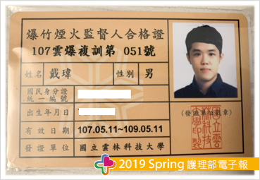 雖然我在107年3月回到了開刀房專責護理師的崗位,但我可以利用排休時間開始我的另一個身份,我可以很驕傲的說我是一位手術室專責護理師/專業爆竹煙火監督人。