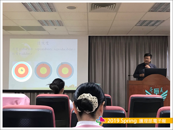 今年1/15護理部亦緊鑼密鼓接續舉辦OSCE考官進階培訓坊,由葉子洪醫師簡介了OSCE考題信度與效度的評估,一份嚴謹的OSCE測驗,需要評估其信度與效度,考官與標準化病人皆要接受充分訓練,考題要試用、評估與修正,評分表項目須明確易評且能反應考試重點,及格標準設定需有理論依據,另須有規劃妥善設備齊全的測驗場所,完成考試後則需分析各站及整體的成績,並進行考題之檢討與精進,讓OSCE更趨近於客觀與公平的標準化評量方式。