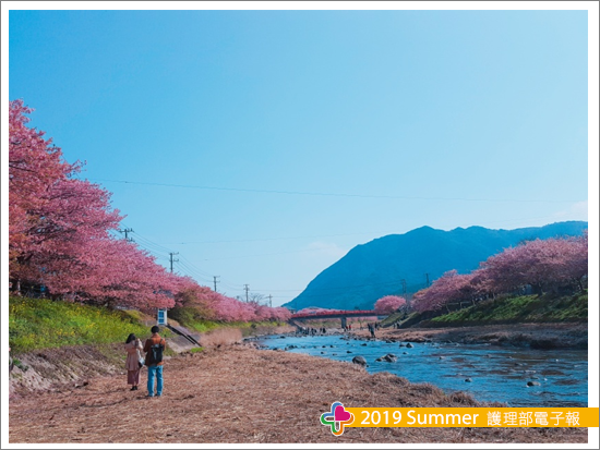 河津坐落於伊豆半島,距離東京大約2-3小時火車車程,是最著名的早櫻(花期2月底到3月初)景點之一,每年河津町都會舉辦「櫻花祭」,而境內還包含七處知名溫泉區,廣大的旅遊腹地,更是令我大開眼界。一早,我們搭了2小時40分的火車,為了避開大量許純美姿勢拍照的大媽,我們選擇最早的一班列車。一抵達車站後,映入眼簾的便是兩旁粉紅櫻花夾道歡迎,彷彿用光所有記憶體都不足以留下這美麗的瞬間,順著夾道的櫻花,走在各式各樣粉紅小物的攤販前,引領著我們在一個轉角後,跳入了整片櫻花海中,順著兩旁河堤,種著滿滿的櫻花樹,粉紅國度的稱號,也難以形容如此壯碩的景色。其中更伴隨著黃澄澄的油菜花,互相輝映著彼此的光彩,是那般的璀燦和諧而非彼此爭艷。