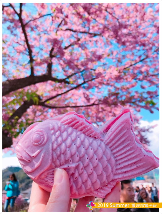 突然間,一陣和風襲來,令我心中震撼不已的畫面,不是眼前高飛的裙底,而是那整片隨風起舞的櫻花雨,煞那粉紅天際環抱而來,夾帶撲鼻的櫻花香,那份只存在於動畫中的想像,如今身於其中,也很難以文筆形容內心的震撼。沿途各式琳琅滿目的攤販,搭配著應景的粉紅小物跳耀而出,櫻花冰淇淋、櫻花拉麵、粉紅鯛魚燒、粉紅假牙阿嬤的微笑、粉紅假髮阿公的漂逸劉海,雖然阿公、阿嬤的身影來自我的想像,但僅此能以降臨於這粉紅國度來形容眼前的一切,童心未泯的老婆大人,也搶著與鯛魚燒合影,為這粉紅世界留下見證的一刻,延著河畔的櫻花林中,我們迎向了百年的櫻花王領域裡,在那宏偉的身影,伴著夕陽西下的餘蔭,結束了粉紅國度的探訪。或許某一天,在員工旅遊的碰撞中,我們會相遇在這粉紅契機中,期待下次旅行的到來吧!