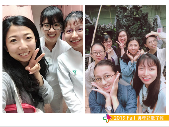 新人階段不能說只有快樂或是只有難受,護理工作是充滿高壓的,我很慶幸在遇到那麼多願意分享自己經驗的學姊外,我也在單位結交了可以談心分享愉快不愉快的「同事朋友」,我們前後報到,互相看著彼此度過三個月、度過一年,有時候在單位偷哭不敢給別人看到的時候,「同事朋友」們總能一眼看出妳正在受委屈,有時候遇到全新不知道該怎麼做的事物時,當請學姊解答完後,一定會互相告知,讓每個人都能先有學到,下一次當自己遇到時,能有一個深刻的口頭經驗。我們的工作需要輪班,輪夜班時,下班後總是孤獨的,但因為有這樣棒的「同事朋友」,會找你出來吃早餐、吃宵夜,不讓你的生活只有月亮陪著孤獨,也許這就是我們之間常說的,莫名的三角力量,一起面對困難,一起學習,一起成長。