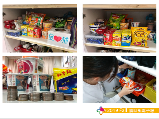 就這樣幾個月的時間過去了,沒想到運用單位內小小一隅成立的「飽食便利店」受到了大家的一致好評,除了解決了大家上班時忘記訂飯或是想不到該吃什麼時的窘境外,也成了下班之後解解嘴饞的重要來源之一,甚至還有些外單位的人員經過時會過來消費呢!想不到當初一個小小的發想,在往後可以帶來大家的誇讚及回響,自己心裡也十分開心有這樣意外的收穫,能在忙碌又繁雜的護理工作中身兼「飽食便利店」店長一職,不僅為自己增添工作上的樂趣,也讓心中的成就感一點一點的累積,這應該算是當初成立「飽食便利店」時沒料想到的吧!