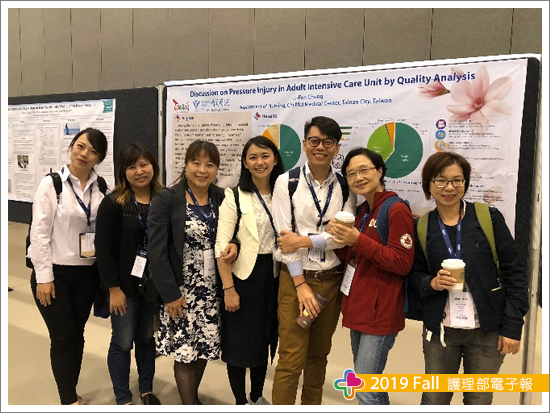 學習過程遇到難忘的趣事是,攸關一堂脊髓損傷病人壓力性損傷照護講者,是來自美國加州區域醫院WCET專責傷口護理師,誤將簡報報告內容發生人日建錯(單位), 私下請教釐清問題過程她的風趣、俏皮及和藹的態度的回覆問題,讓我們彼此更熟識,交流的過程中最感謝我的「熊讚隊友」:雅鈴、庭碩及傷口護理師秀慧學姊,流利的英文翻譯及同領域對品質照護執著與認同,成就了國際交流的觸媒,接連的5天滿滿的學習,也感謝來自與會學者提供不同國情的照護思維及臨床問題,分享我們照護的經驗。