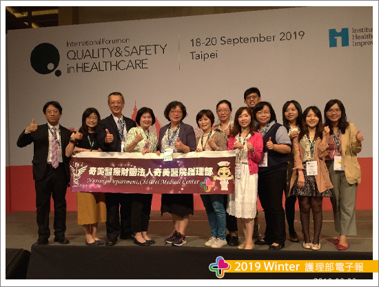 這首次在台北舉辦三天的亞太年會,醫策會(2019)表示共有來自34國家1300位學者與臨床專家,投稿錄取數更高達550篇的海報發表,其中台灣就高達660人報名參加,錄取篇數達350篇的紀錄。在本次的投稿主題中,醫療品質與病人安全類共有339篇、醫療職場Joy in work共82篇、全民照護與公共衛生共69篇、專業領導力建立共27篇、科學與研究方法改善共17篇與學生投稿共16篇,成果豐碩。而我們奇美醫院三院區也在主管的支持下共有近30位同仁參加,很感謝醫院對我們的支持,讓我們很榮幸可以參加此醫療品質的盛會。