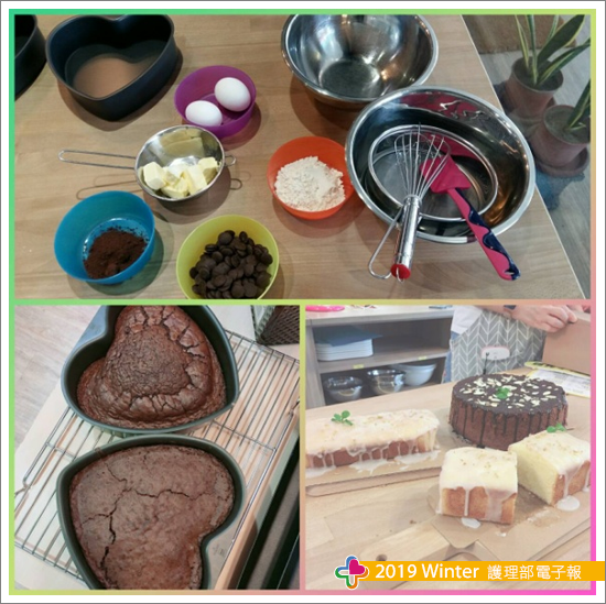 這次欲製作的蛋糕,有磅蛋糕、戚風蛋糕及布朗尼,在挑選的時候我直覺挑了生巧克力淋面布朗尼,心想做失敗頂多當巧克力餅乾吃;蛋糕的製作有完整的SOP,從各材料的拿取、秤重、器具的清洗,全都是學員自己動手做;奶油75克這下可有挑戰了,切成方塊的奶油,最後一塊加入後不是73克就是78克,換了好幾塊就是不能剛好75克,在科學領域的我們總講究精準,多1克少1克就是不行,也因此錯過麵粉出筋及雞蛋打發的最佳時機,一樣的材料、一樣的SOP做出來的蓬鬆度就是有些許的不一樣。