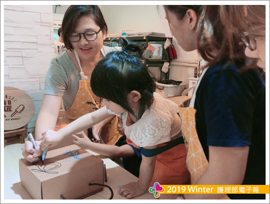 誰說走進烘培坊只是做烘培,五顏六色的彩色筆、色紙,讓大家在等待蛋糕烘烤的時間可以盡情在自己的蛋糕盒上創作,孩子們認真的挑著自己喜歡的顏色來塗鴉,每件抽象的線條中孩子們說明著自己的創作,有飛機、花朵、奇異果…這又考驗著我不發達的藝術細胞了。好不療癒的一天,讓大家帶著自己滿意的作品回家與家人分享,這次的烘培經驗不僅挑起了我的烘培魂,親子活動顧名思義就是帶著孩子們一起參加的活動,心中浮出了一個念頭,我們下次來辦一個“親老”烘培,把家裡的老大人帶出來,一起來做中玩。