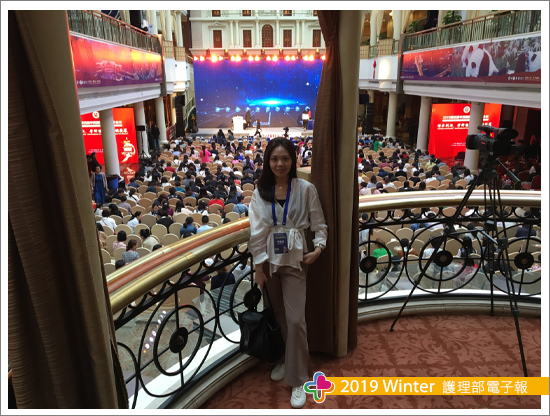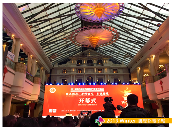 9月20日這天終於來臨,一早7點多即到會場等待開幕典禮,我想此次參會交流的不僅僅是護理學術領域,也觀察到中國科技的進步、設備的新穎,於會場門口有警察駐守,且須通過安檢門才能進入主會場,即便不知其所進入的條件為何,就算能達到嚇阻的作用,對從外地來的我們來說也算是感到放心了一點,從一入場的工作人員入位引領到開幕式開始,完全可以感受到主辦單位的用心,主屏幕旁分別各有兩個轉播投影片,分別有中文及英文的簡報可供各地前來共襄盛舉的護理人更清楚台上講者所云為何。