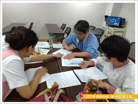本院設有完善的OSCE國家考場,每年醫教中心皆配合考選部定期舉辦國家OSCE,因此幾經思量,第一屆護理盃OSCE運動會,由護理部與台灣醫事聯合臨床技能發展學會、臨床技能中心聯手合作;今年6-8月護理部向醫教中心取經,學習國家級考試方式;加上柯雅婷督導以自身參加國家技能競賽擔任裁判的經驗,模擬、再造、融合運動會的元素,經多次雙向討論後,規劃出OSCE運動會的賽程雛形,最後確定賽制訂為半天,五個OSCE競賽主題(給藥、靜脈注射、輸血反應處置與ISBAR交班技巧、Pig-tail管路照護與疼痛評估),公告招募對象為第二年NPGY 20位護理師,進行小而美之護理盃OSCE運動會,亦為我們奇美護理臨床技能測驗設下重要的里程碑。今年九月如火如荼展開籌備工作,大家各司其職開始進行各自負責的業務範疇,對流程一有問題隨時提出予以修正,充分展現奇美護理人的軟實力;接下來則開始進行考官共識會議的籌備,為了讓5個考題20位學生可以如期於半天順利完成考試,我們總共徵召了10位OSCE考官,讓每個主題同時有兩個考場同時進行。十月中旬分別舉辦了五場共識會議,以期達到所有考官共識之一致性與標準化(圖1,2),並且抵定OSCE運動會形勢的各項教具與相關文件。