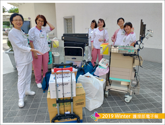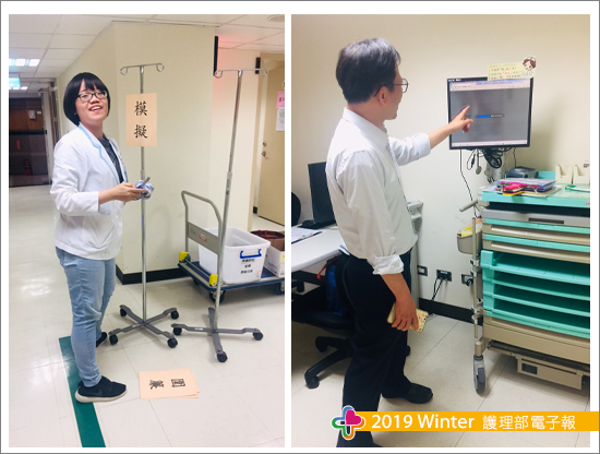 運動會前一天與當天,一行人前往醫院長億城OSCE國家考場進行場佈,並確認整體動線的預演,活動籌備中工作小組成員包含4AI郭麗玲高階護理師、ER吳貞鋆高階護理師、HD黃惠暄護理長與邱旅揚護理師、柯雅婷督導協助多次的活動前共識,幕後堅強陣容黃素雅護理師、黃聖凱書記與醫教中心兼聯技學會的盧英云小姐準備所有教具設備及備用物品;葉玲護理師協助活動當天的茶點用餐與當天的相關文件印製,資訊室建彰協助架設網點與測試相關資訊系統,總務室派車接送與搬運考場用品,大家各司其職方始運動會得以順利運作(圖3-10)。