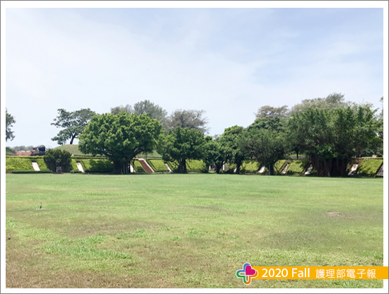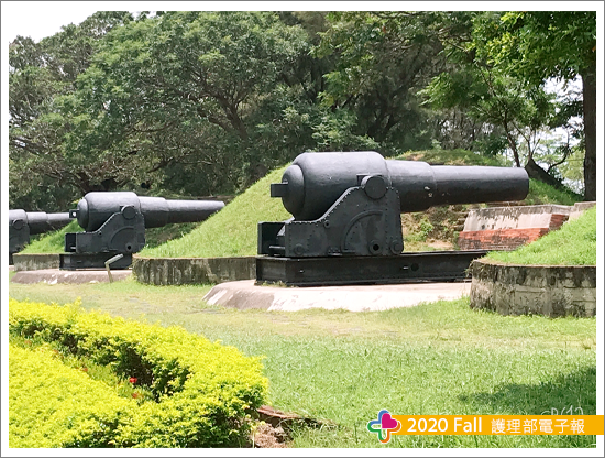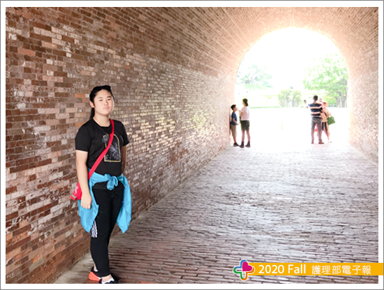 終於到達目的地-億載金城,因為是台南市民免費入園(享受台南市民的福利),一入園便是紅磚色的有點斑駁的拱門,有著歷史的風化及滄桑,上面寫著億載金城四個字,圍繞在旁的綠色小河像是護城河,走過河上的橋走進像是穿越時光的紅磚長廊隧道,隧道內陰涼還有著微風,越接近出口像是充滿亮光的通道,彷彿從現代穿梭到古城,走出隧道後映入眼簾的是一片廣大的草地,那是操練兵的的教場,周圍有著石板樓梯,走上去多是擺放著許多砲台的平台,所以億載金城古稱為「安平大砲臺」或「二鯤鯓砲臺」,清朝時期是為了抵禦日本軍隊所建置的砲臺,是相當具有歷史的一個建築。