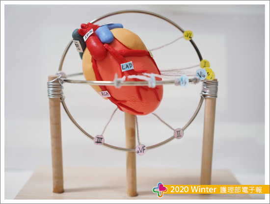 有鑑於原案─運用民 國 102 年護理創新案─「快速圖解-心電圖導程探知冠狀動脈分布」中所提出的「冠狀動脈與十二導程關聯心電圖」(吳,2013)教育臨床護理人員及人員反饋,與臨床抽樣實測人員回答十二導程心電圖對應冠狀動脈血管正確率20%(5/25),顯示無法立即反應對應相關心肌梗塞位置,另針對心臟內科加護病房護理人員遇到急性心肌梗塞病人的機率遠比其他單位人員高,因此,藉由實體黏土模型及圖像創作構思,呈現心臟3D空間中不同角度的電氣活動並對應相關之冠狀狀動脈,藉以使用了解冠狀動脈及心臟各區塊的狀況,以達教育人員可不須等待心肌酵素報告,即完成判讀對應阻塞冠狀動脈可立即報告醫師確立診斷,可縮短至導管室完成心臟重新再灌流的黃金時間,並於完成此模型後,重新教育人員後,再抽測人員答對率為100%(25/25)。